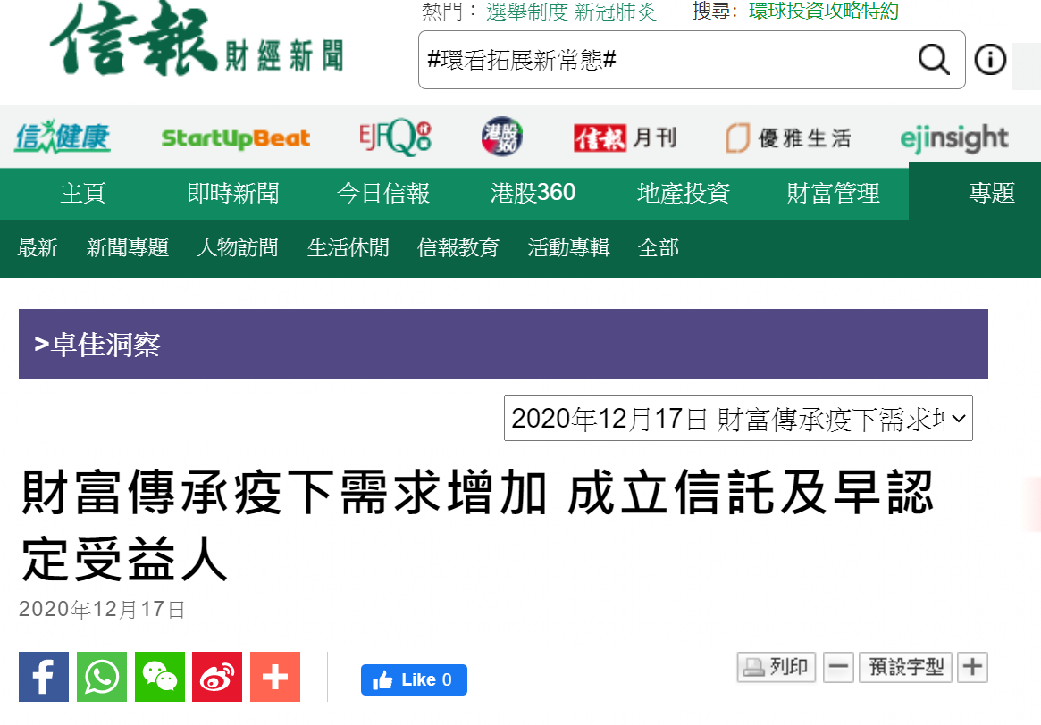 疫情肆虐,每日見到確診及死亡數字,不單令人停下來反思人生目標,也因而改變大眾對傳承財富的看法,令不少家庭開始着手設立信託。本報特別專訪卓佳信託董事總經理邵偉球,及卓佳信託執行董事陳宜穎,講解信託比其他傳承財富方法優勝的地方,以及信託的未來發展趨勢。