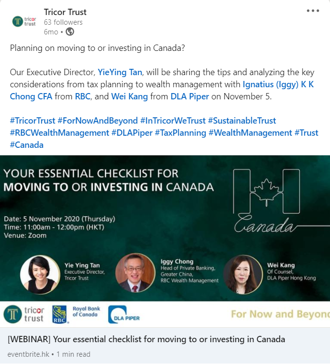 Yie Ying Tan shares tips and analyses key considerations from tax planning to wealth management in Tricor Trusts's "Your Essential Checklist for Moving to or Investing in Canada"